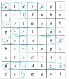 1. Hello 2. Goodbye 3. morning, class 4. cat 5. afternoon