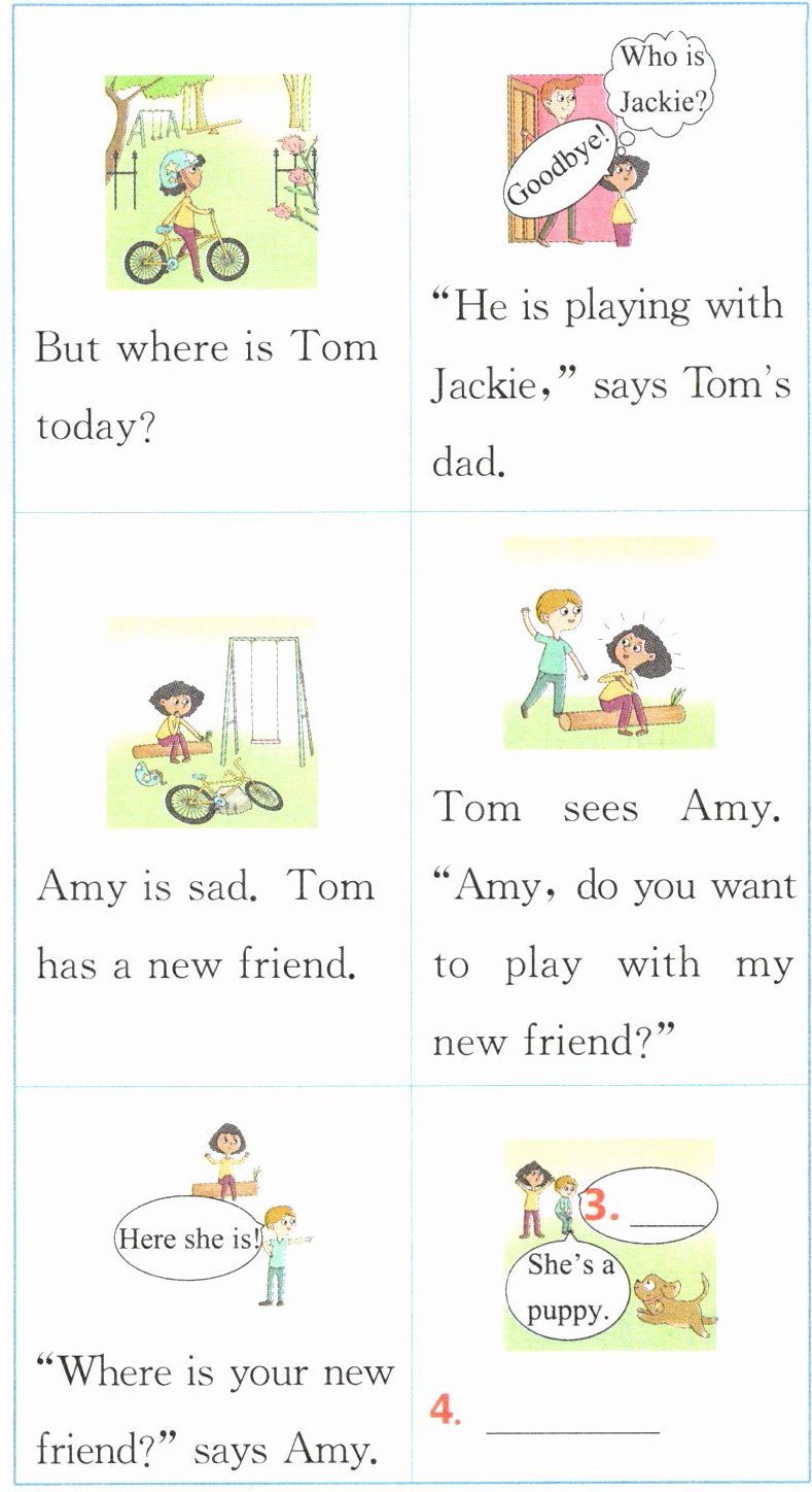 Tom sees Amy. “Amy, do you want to play with my new friend?”
