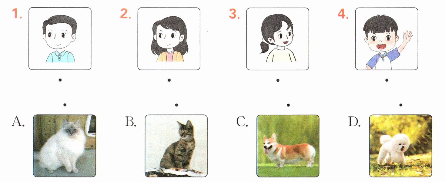 (一)1—C 2—D 3—B 4—A (二)1. father/dad 2. students 3. sister