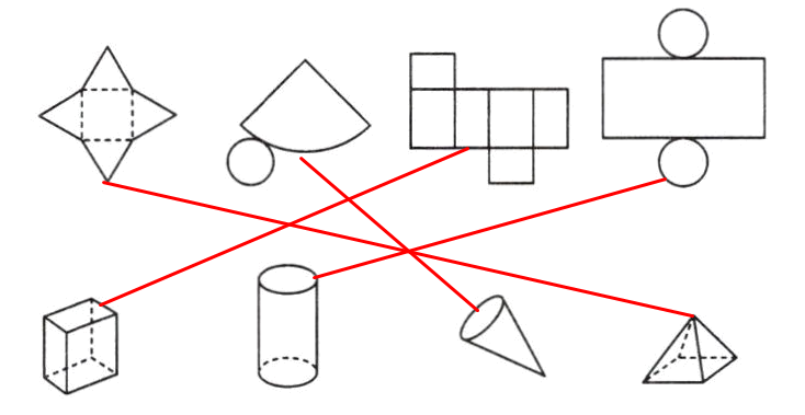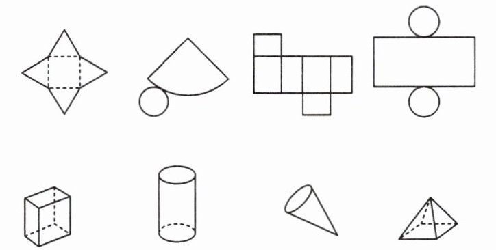 9. A|北京四中校本经典题 如图,把立体图形与它的展开图用线连接起来。