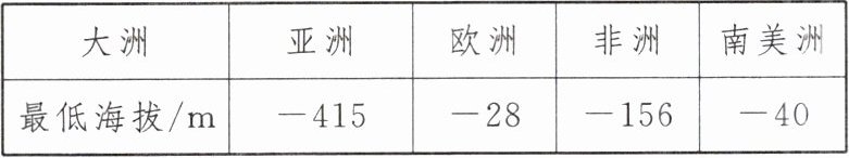 7. (2024·辽宁)亚洲、欧洲、非洲和南美洲的最低海拔如下表: