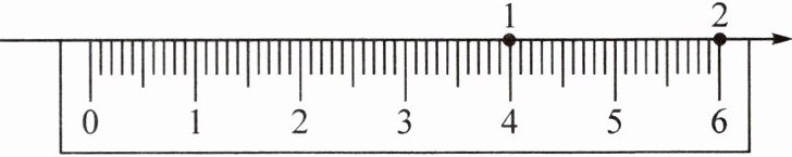 2. (2024·吕梁中阳县期中)如图,将刻度尺放在数轴上,让 4 cm 和 6 cm 的刻度线分别与数轴上表示 1 和 2 的两点对齐,则与数轴上表示 0 的点对齐的刻度线是(