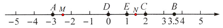 $.$ $(2)$在数轴上分别标出表示有理数$ - \frac{5}{2} $和$ 1.5 $的点$ M,$$N.$