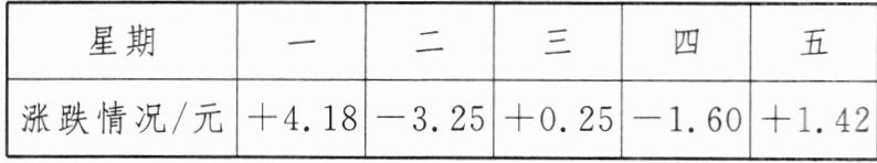 8. 某只股票一星期的涨跌情况见下表(正号表示价格比前一天上涨,负号表示价格比前一天下跌;股市周末不开盘,股价无变化):