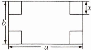 13. 如图,小明想把一张长为 $ a $,宽为 $ b $ 的长方形硬纸片做成一个无盖的长方体盒子,于是在长方形纸片的四个角各剪去一个边长为 $ x $ 的小正方形,用代数式表示纸片剩余部分的周长为(