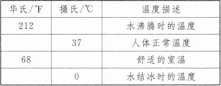 12. 杭州外国语校本经典题 有的温度计有华氏、摄氏两种温标,华氏 $F(^{\circ}F)$、摄氏 $C(^{\circ}C)$ 的转换公式是 $F = 1.8C + 32$. 请填写下表.