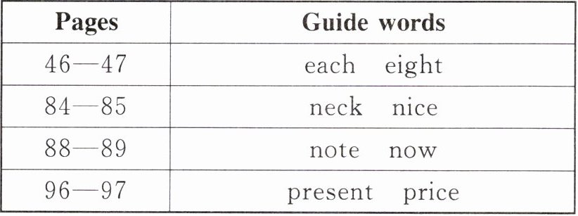 活动1 On which page would you find these words? Write down the possible page number ranges(写出可能的页码范围) for the following words.
