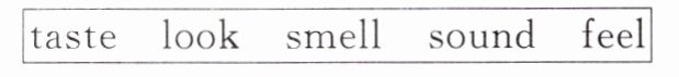 10. smell 11. feels 12. tastes 13. sounds 14. looks