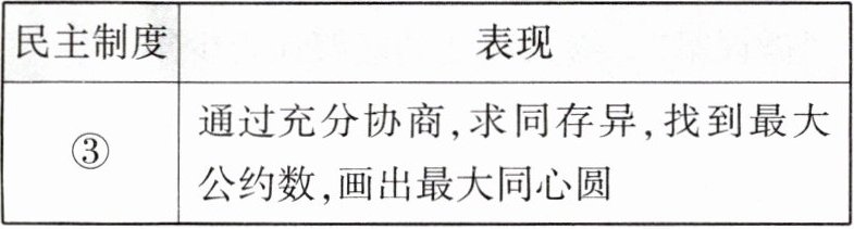 A 本题考查我国社会主义民主制度.人民代表大会制度是人民掌握国家政权、行使权力的根本途径。基层群众自治制度是社会主义民主政治建设的基础。中国共产党领导的多党合作和政治协商制度强调通过充分协商,求同存异,找到最大公约数,画出最大同心圆。故选A。