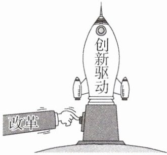 C 本题考查创新与改革的关系。漫画体现了用改革之手激活创新引擎,释放创新活力,C符合题意。A观点正确但与题意不符。B观点绝对。改革的根本目的是解放和发展生产力,提高人民生活水平,D错误。