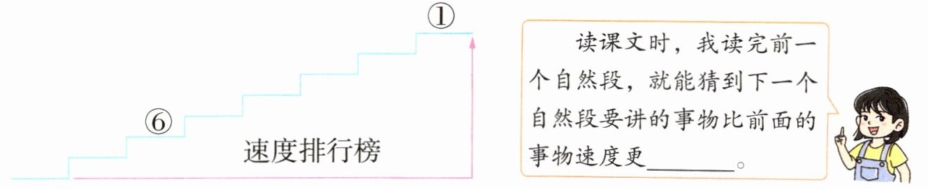 读课文时,我读完前一个自然段,就能猜到下一个自然段要讲的事物比前面的事物速度更______。
