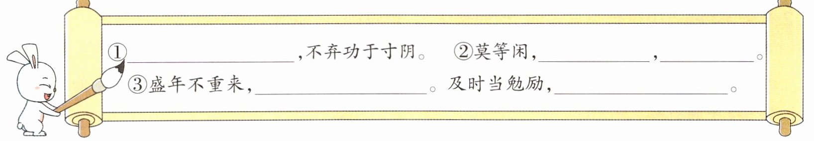 3. 天星小学推出了半小时晨读计划,学校想在黑板上方贴一个条幅,警示大家珍惜宝贵的晨读时间。上面的名句中最适合作为条幅内容的是( )。(填序号)
