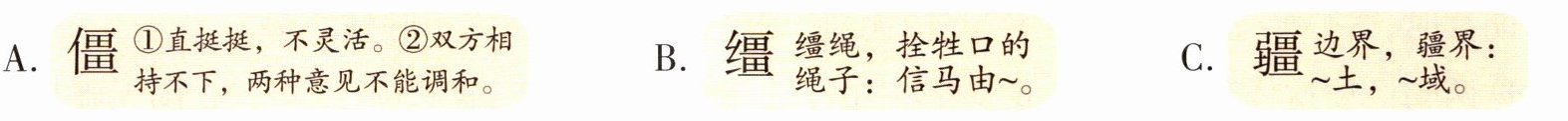 B. 缰 缰绳,拴牲口的绳子:信马由~。