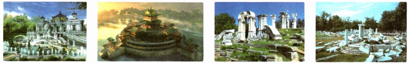【图片资料】前两幅为圆明园3D复原图,后两幅为现在圆明园遗址中的断壁残垣。