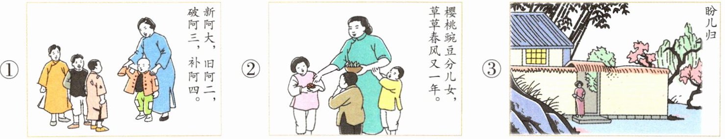 三幅漫画分别为我们展示了______、______、______的母亲形象。其中漫画______(填序号)表达的意思与“意恐迟迟归”有异曲同工之妙。假如你是这幅漫画中离家在外的游子,你想对母亲说:______