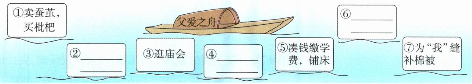 三 [梳理场景,再现父爱](新题型)小语梳理了课文中的场景,请帮她补全思维导图,并选一选。