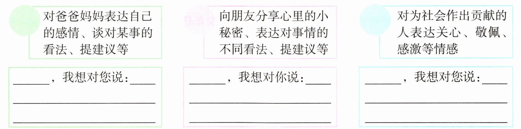 对爸爸妈妈表达自己的感情、谈对某事的看法、提建议等