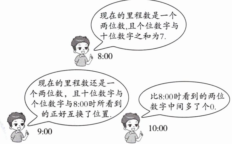 |8:00|现在的里程数是一个两位数,且个位数字与十位数字之和为 7.|