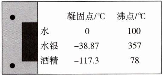 2. 新趋势 跨学科综合 仔细观察如图资料卡中的信息,可以发现水银的凝固点比酒精的凝固点高( )