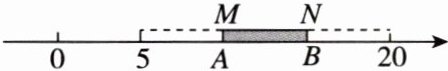 11. 如图,有一根木棒$MN$放置在单位长度为1cm的数轴上,它的两端$M$,$N分别落在点A$,$B$处.将木棒在数轴上水平移动,当点$M移动到点B$时,点$N$所表示的数为20,当点$N移动到点A$时,点$M$所表示的数为5,则木棒$MN$的长为______cm.