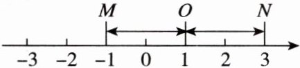13. 在数轴上,表示数1的点记为$O$,我们把到点$O距离相等的两个不同点M和N$,称为基准1的对称点.例如:如图,点$M表示数-1$,点$N$表示数3,它们与表示数1的点$O$的距离都是2个单位长度,则点$M与点N$互为基准1的对称点.