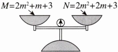 B 【点拨】$M-N=2m^{2}+m+3-(2m^{2}+2m+3)=2m^{2}+m+3-2m^{2}-2m-3=-m$. 因为$m>0$,所以$-m<0$. 所以$M<N$. 所以天平向右边倾斜.