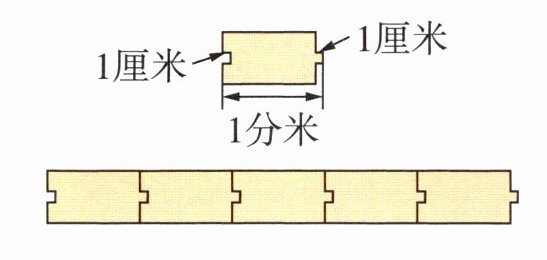 解析 先将单位统一,再计算。1 分米=10 厘米。如图所示,组合之后可以看作是5个(10-1)厘米再加上最后的1厘米,因此一共长(10-1)×5+1=46(厘米)。