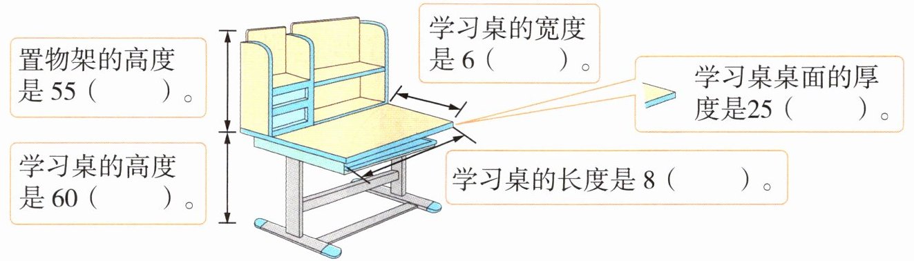 1 下面是乐乐新买的学习桌,请你填上合适的长度单位。