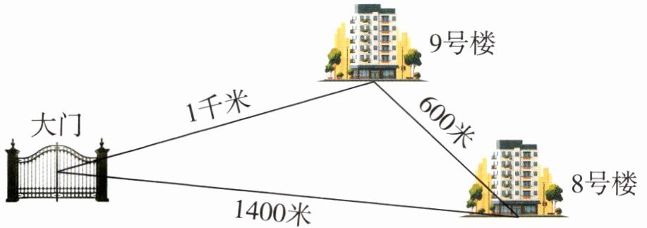 5 外卖员张叔叔要从小区门口出发步行给8号楼和9号楼送外卖,然后再返回小区门口。