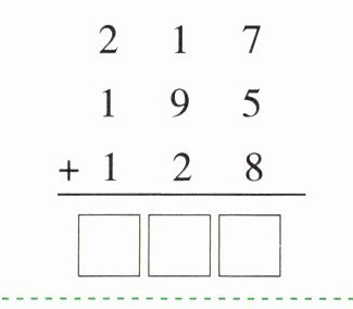 $\begin{array}{r} 2\enspace1\enspace7\\ 1\enspace9\enspace5\\ +1\enspace2\enspace8\\ \hline □□□\end{array}\\ \hline □□□ $