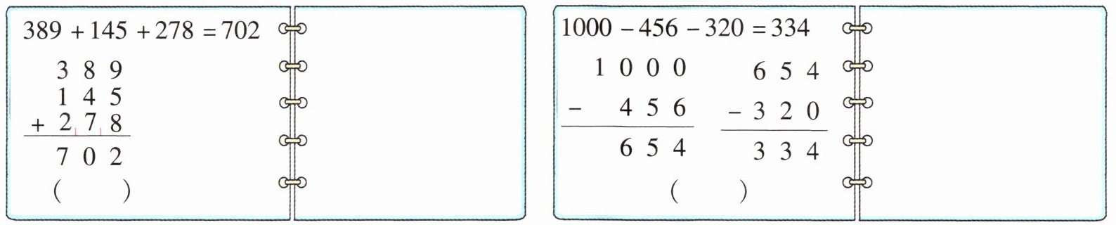 $\begin{array}{r} 1000\\ -456\\ \hline 654\end{array} $ $\begin{array}{r} 654\\ -320\\ \hline 334\end{array} $
