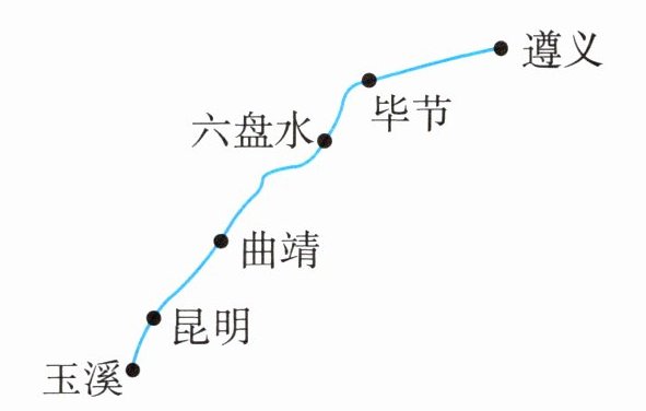 4 参加红色讲座 王叔叔从曲靖市出发前往遵义市参加红色讲座,下面是行程路线图。