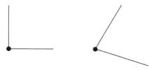 3 用给定的点和一条边各画一个角。