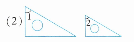 用三角板上的角比一比,∠1 和∠2 相比,( )大。(填“∠1”“∠2”或“一样”)