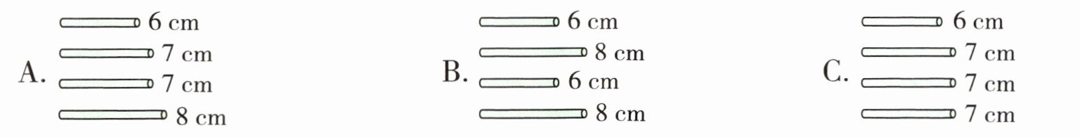 (1)下面3组小棒中,首尾相接能围成长方形的是( )。