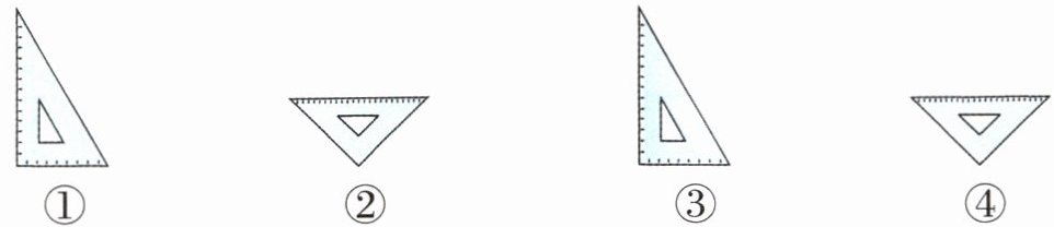2 下面是两副同样的三角板,用( )和( )能拼成一个长方形,用( )和( )能拼成一个正方形。(填序号)