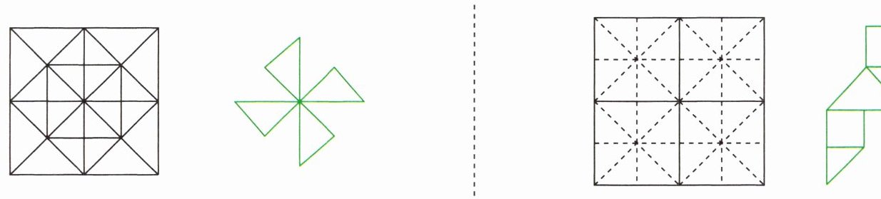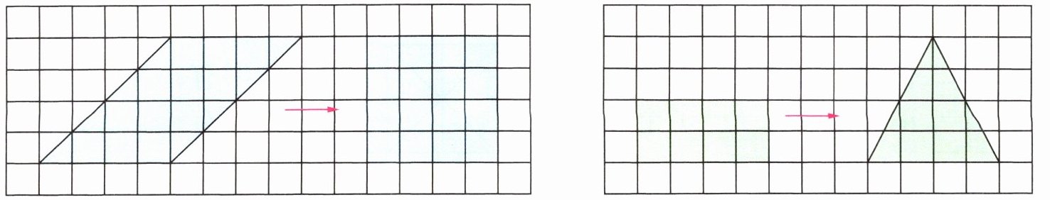 5 每组的第一个图形怎样剪可以拼成第二个图形?在图中画一画。