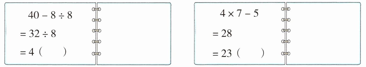 2 下面的计算对吗?对的在( )里画“√”,错的画“×”并改正。