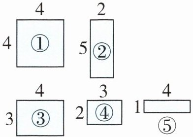 (1)首先观察所给图形各边的长度,要想两个图形拼成一个新的长方形,两个图形一定有一条边长度相等。边的长度都有4厘米的有①③⑤,都有2厘米的有②④,都有3厘米的有③④。将它们两两组合:①③、①⑤、③⑤、②④、③④。其中③⑤拼成的图形各边都是4厘米,是正方形,其余的都是长方形。