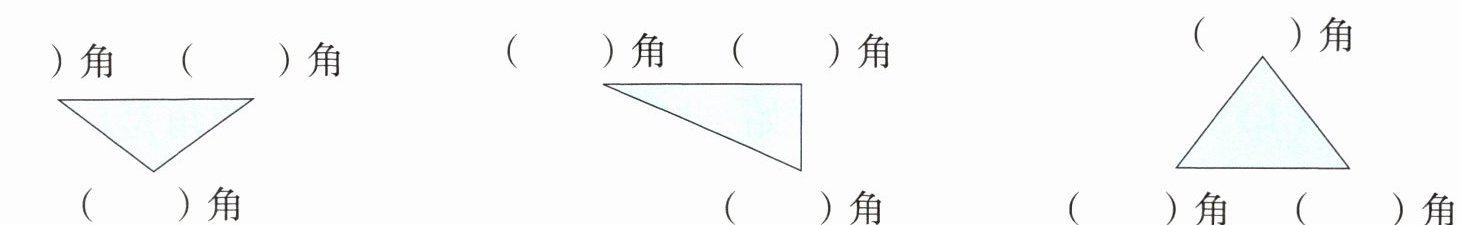 我发现:一个三角形中至少有( )个锐角,最多有( )个锐角。