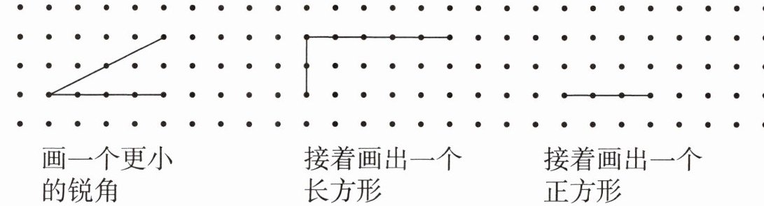 画一个更小的锐角 接着画出一个长方形 接着画出一个正方形 (第一幅图画法不唯一)