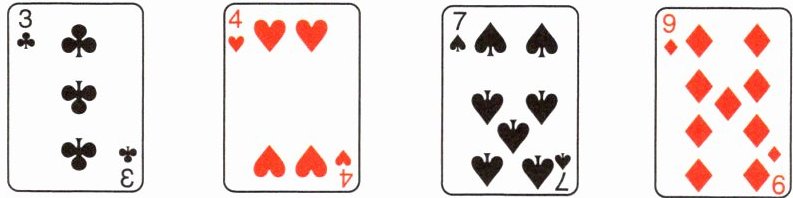 7 (开放题)“凑24点”是非常有趣的数学游戏。请用这4张牌上的数列算式算得24。