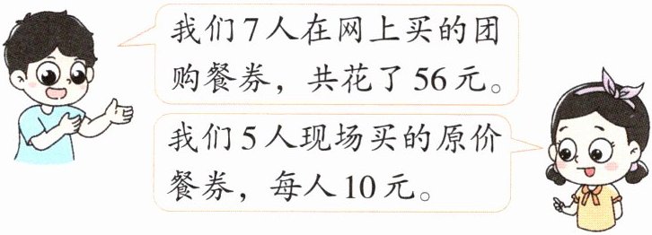 我们7人在网上买的团购餐券,共花了56元。