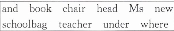 26. teacher's 27. chairs 28. books 29. Ms 30. and 31. Where 32. head 33. schoolbag 34. under 35. new