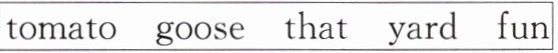 5. those 6. tomatoes 7. yard 8. fun 9. geese
