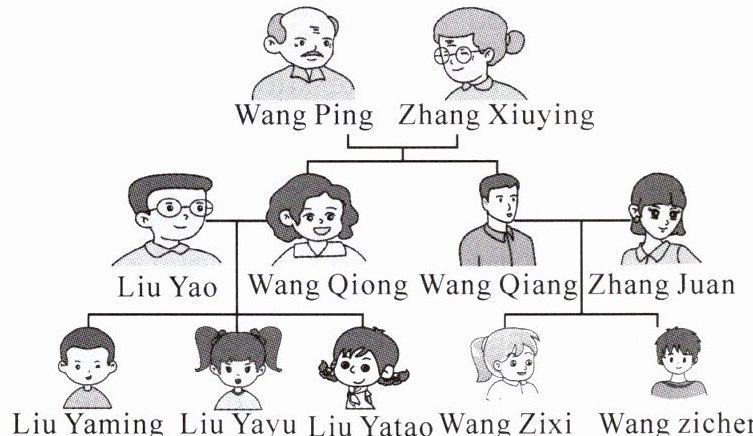 (一)根据刘亚桃的家谱图,完成下列各题。(每空一词)