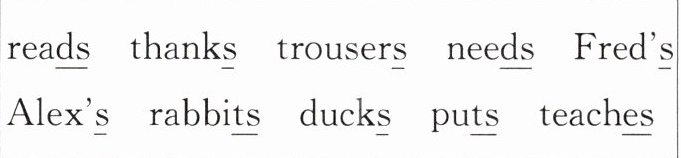 5.thanks ducks 6.trousers Fred's 7.Alex's teaches