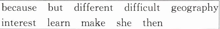 11. because 12. then 13. geography 14. interesting 15. learn 16. different 17. difficult 18. but 19. her 20. makes