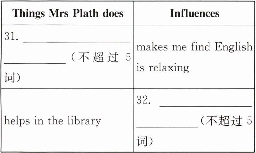 Mrs Plath.(不超过5词)30. Mrs Plath is