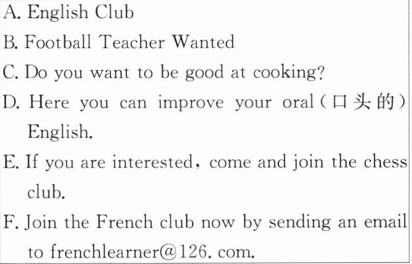 Join the English club! ______28______ Some foreign teachers will join us to help. We meet at weekends. Call Dale at 463-5217 or email him at dale726@ Englishabe. com.